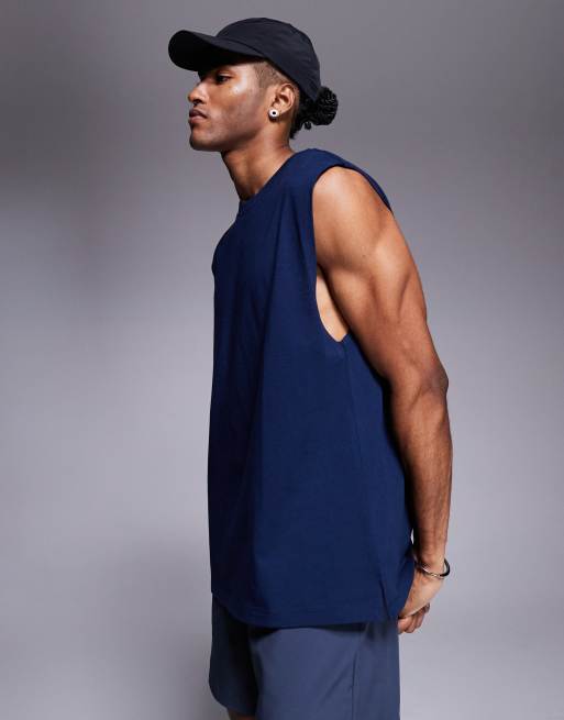 4505 Icon cotton oversized pump training tank with quick dry finish in navy
