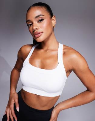 4505 Icon medium support square neck sports bra with adjustable straps in white