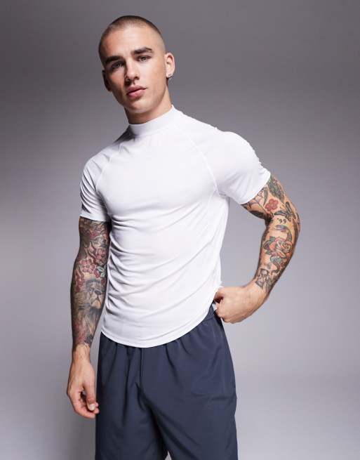 4505 muscle fit seam detail quick dry base layer with mock neck in white