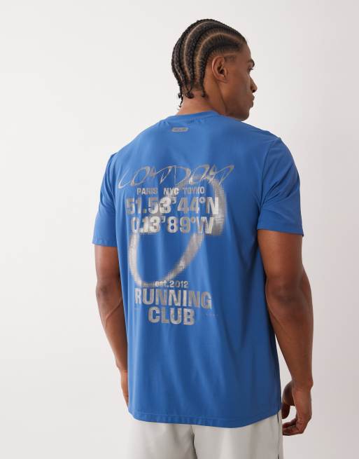 4505 nylon performance mesh quick dry back print running t-shirt in baltic blue