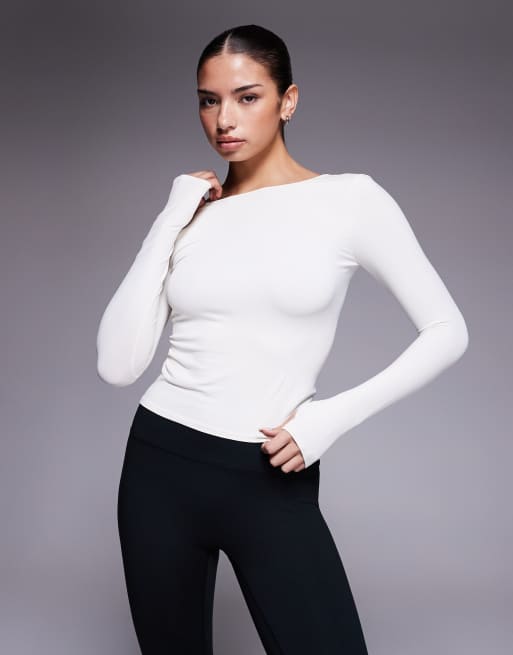 4505 plush handle scoop back layering long sleeve in ivory