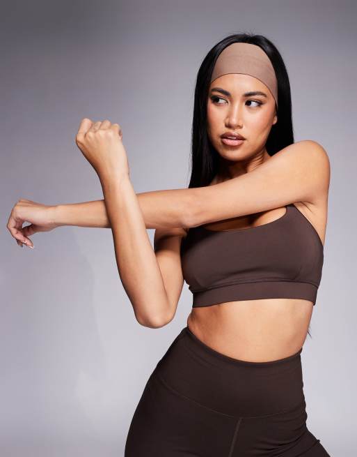 4505 sculpting active medium support sports bra with adjustable straps in french roast
