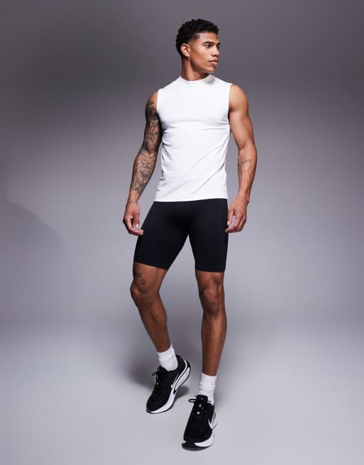 4505 seamless 8 inch base layer running shorts with drawstring waist in black