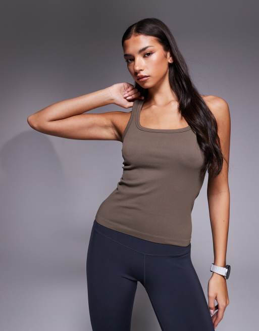 4505 seamless rib scoop neck racer back active vest in morel