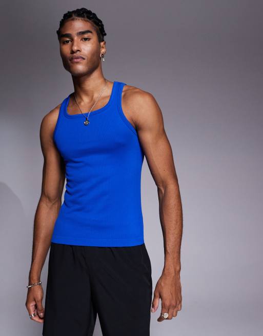 4505 square neck slim fit seamless rib training vest in cobalt blue