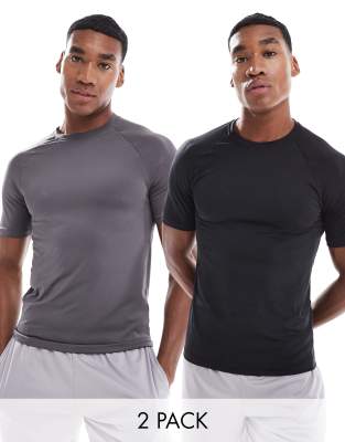 ASOS 4505 Icon muscle fit training t-shirt with quick dry 2 pack in black and charcoal