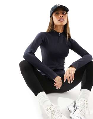 ASOS 4505 Icon seamless rib zip through long sleeve top in navy