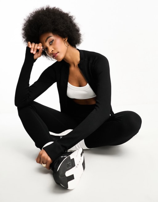 ASOS 4505 Tall Seamless Rib legging and zip through long sleeve in black
