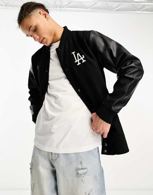 47 Brand MLB LA Dodgers varsity jacket in black with tonal sleeves