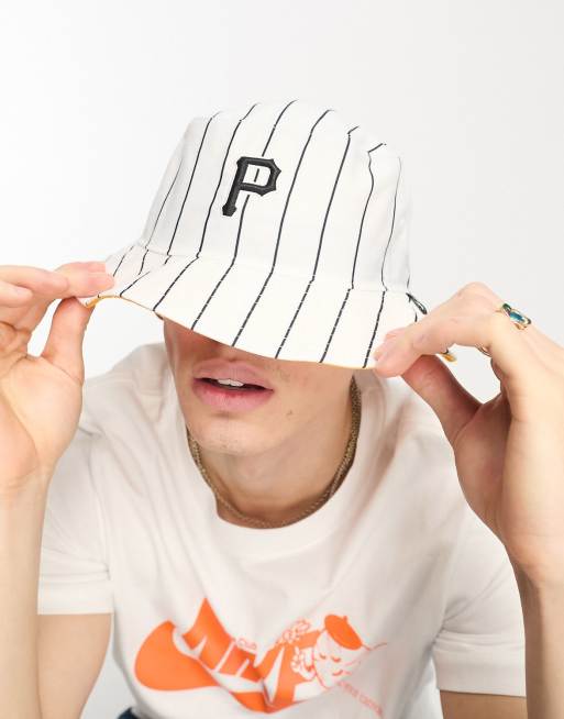 47 Brand MLB Pittsburgh Pirates bucket hat in white with black pinstripes