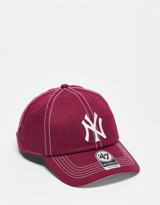 47 Brand NY Yankee clean cap with contrast stitch detail in red