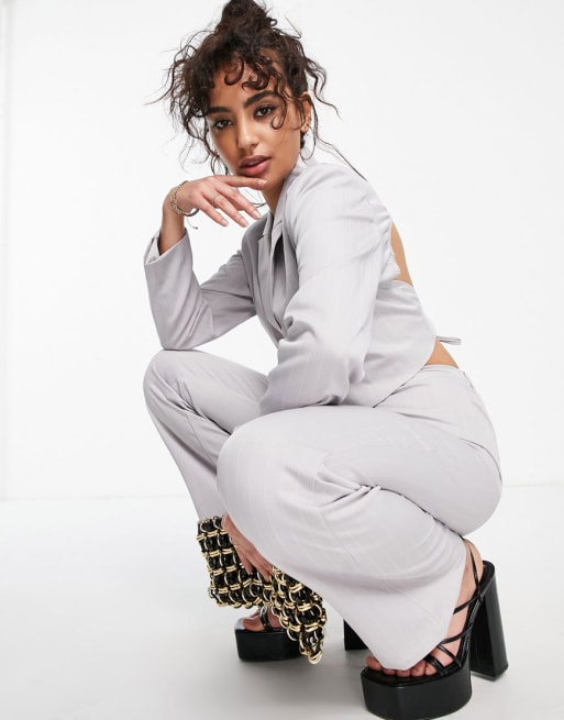 4th & Reckless Petite blazer co-ord in grey pinstripe