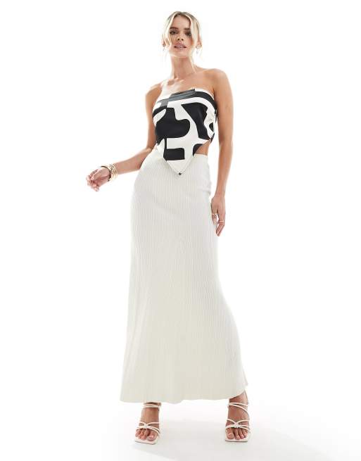 4th & Reckless Petite knitted rib fishtail maxi skirt in cream