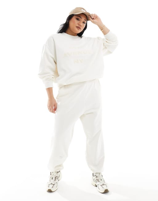 4th & Reckless Plus exclusive embossed boucle sweatshirt and joggers co-ord in c
