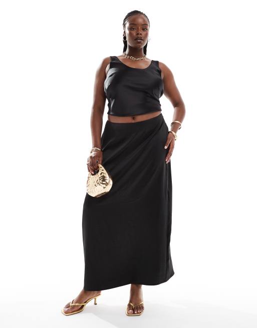 4th & Reckless Plus exclusive satin back split maxi skirt in black