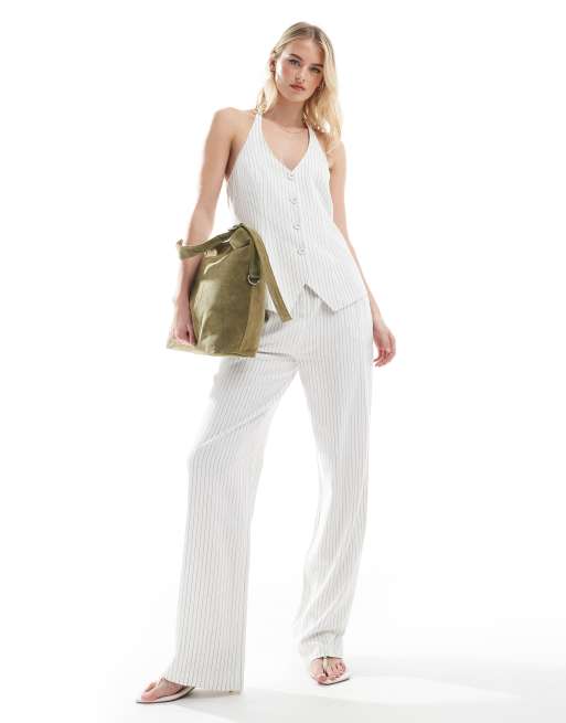 4th & Reckless Tall tailored halterneck button through waistcoat and trousers co-ord in white pinstripe