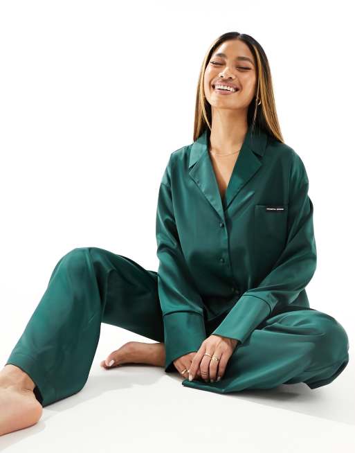 4th & Reckless Aurora satin pyjama shirt in emerald green