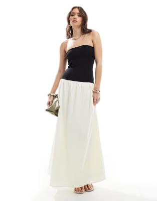 4th & Reckless bandeau contrast drop waist maxi dress in black and cream