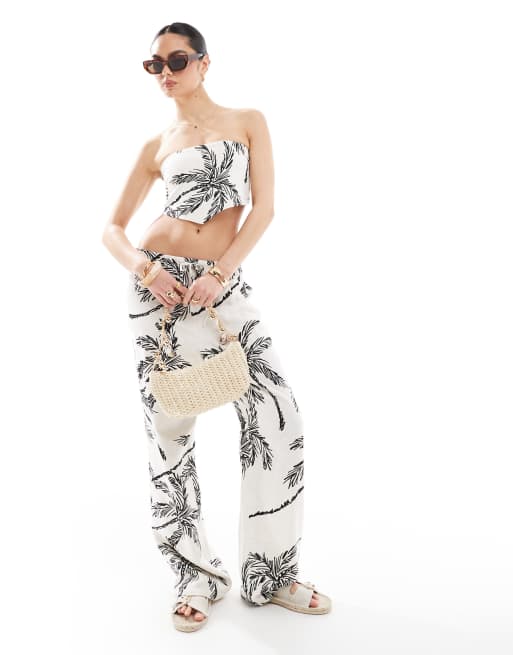 4th & Reckless bandeau scarf top & wide leg trouser co-ord in beige palm print