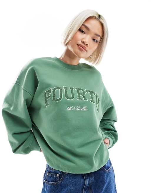 4th & Reckless borg logo sweatshirt in washed green