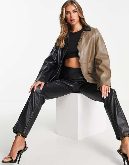 4th & Reckless colour block leather look jacket in black and mocha