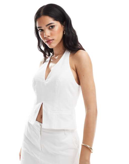 4th & Reckless cotton tailored halterneck front split waistcoat top co-ord in white