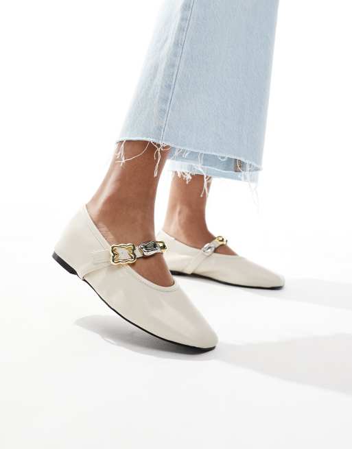 4th & Reckless embellished strap faux leather ballet flats in cream