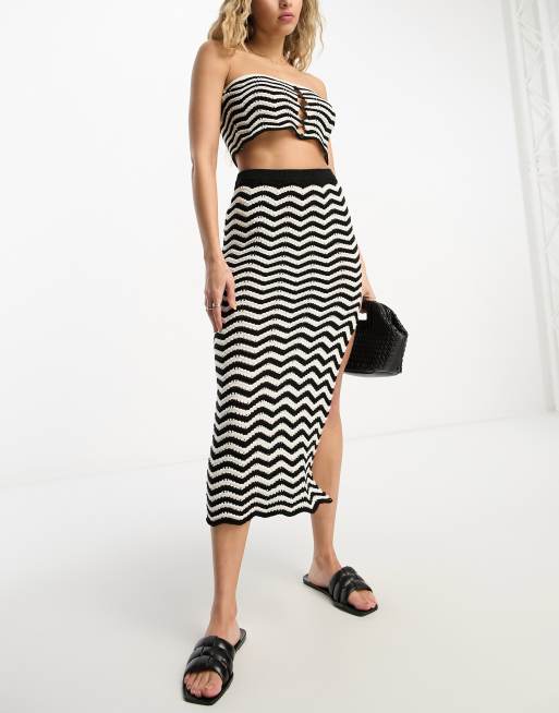4th & Reckless island crochet beach skirt co-ord in black & white