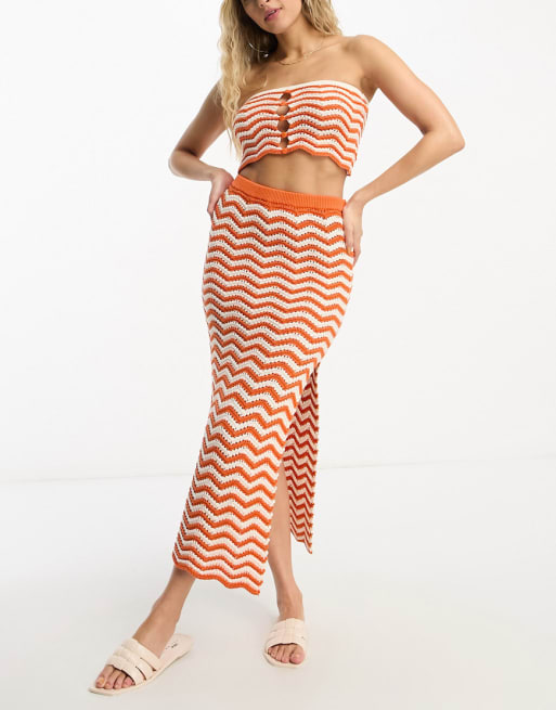 4th & Reckless island crochet co-ord in orange & white