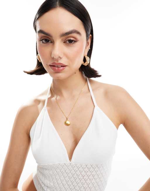 4th & Reckless knitted halterneck tie back beach cami top co-ord in white