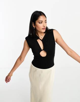 4th & Reckless lara cut out detail bodysuit in black