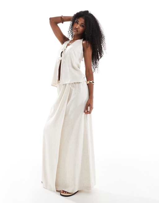 4th & Reckless linen blend wrap maxi beach skirt co-ord in beige