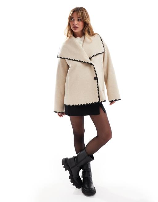 4th & Reckless oversized lapel jacket with contrast stitch in camel