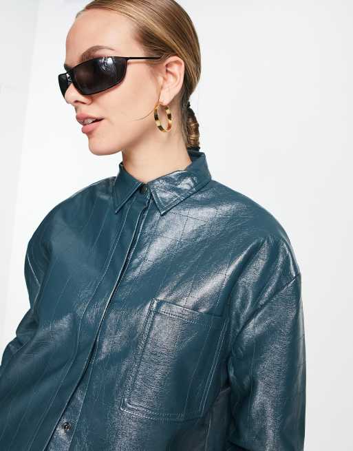 4th & Reckless oversized leather look embossed shirt co ord in teal