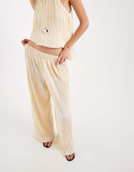 4th & Reckless plisse wide leg trouser co-ord in lemon