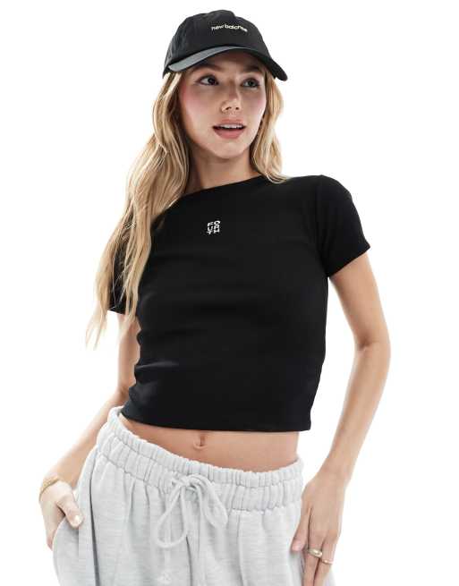 4th & Reckless premium ribbed embroidered logo t-shirt in black