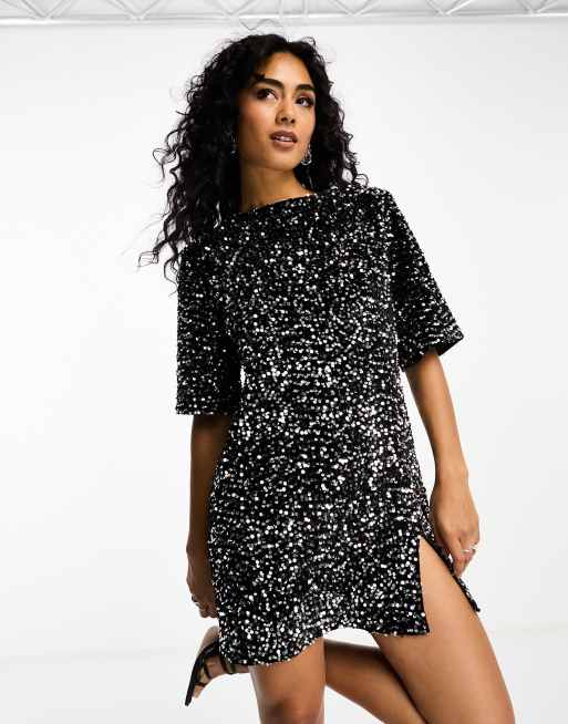 4th & Reckless sequin low tie back mini dress in black