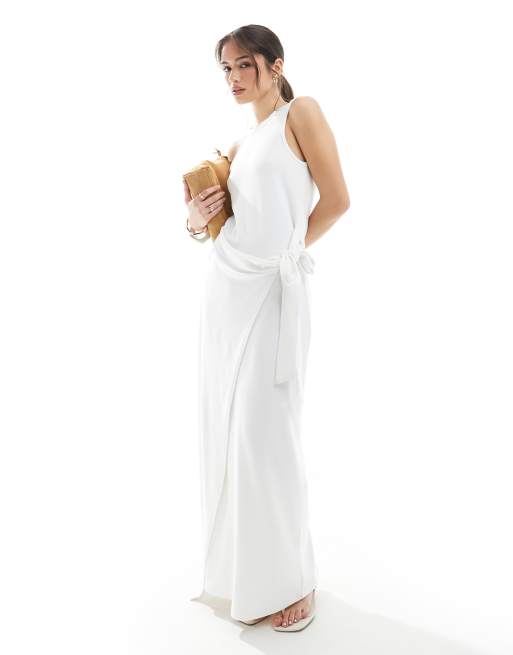 4th & Reckless sleeveless drape tie side maxi dress in white