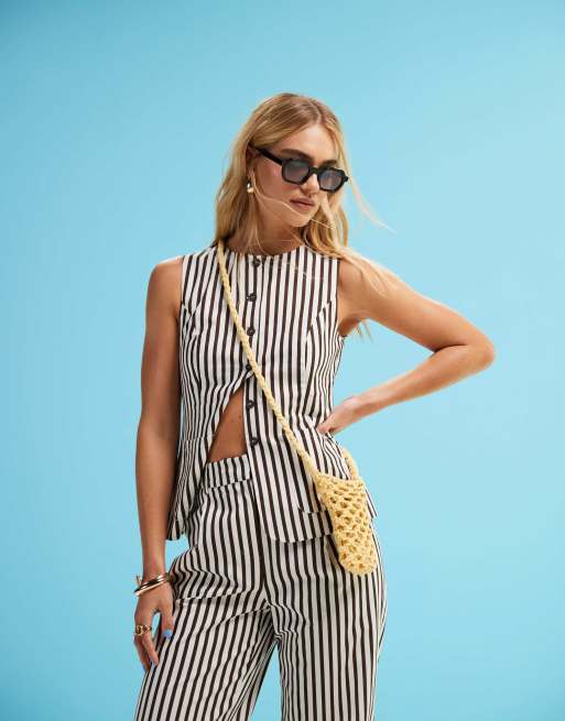 4th & Reckless tailored button through waistcoat top co-ord in brown stripe