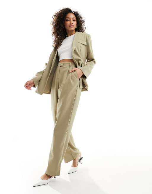 4th & Reckless tailored wide leg trousers co-ord in olive