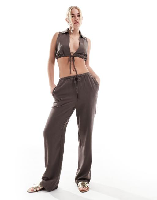 4th & Reckless tie front beach trouser co-ord in brown