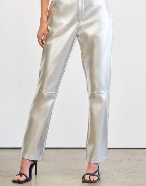 4th & Reckless x Elsa Hosk straight leg leather look trousers in silver