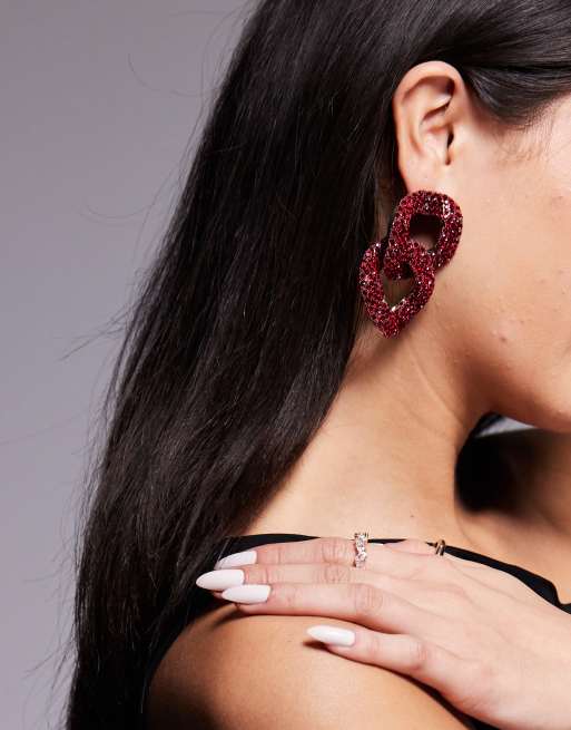 8 Other Reasons embellished chain link statement earrings in burgundy
