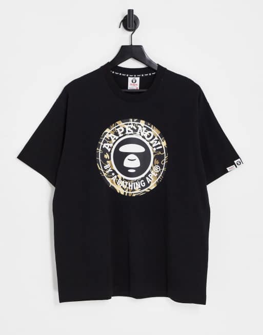 AAPE By A Bathing Ape brown camo logo t-shirt in black