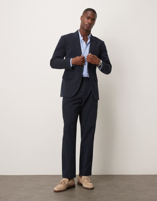Abercombie & Fitch slim single breasted seersucker suit blazer & trouser co-ord in navy