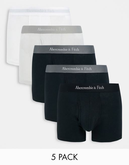 Abercrombie & Fitch 5 pack trunks in black, white, stripe and grey with logo waistband