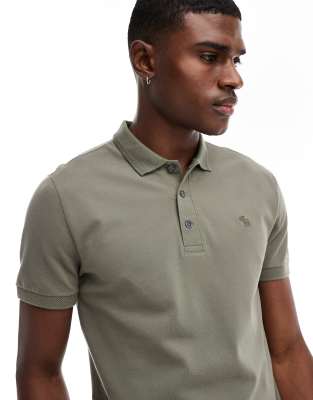 Abercrombie & Fitch chic icon logo tipped pique polo in olive green