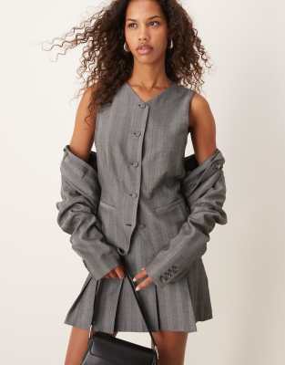 Abercrombie & Fitch co-ord button front tailored vest in striped grey herringbone