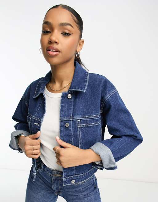 Abercrombie & Fitch cropped denim jacket in dark blue