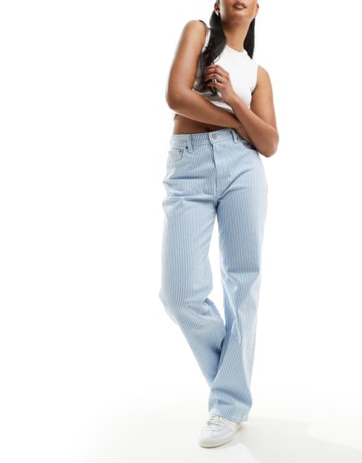 Abercrombie & Fitch Curve Love 90s relaxed fit jean in blue and white stripe